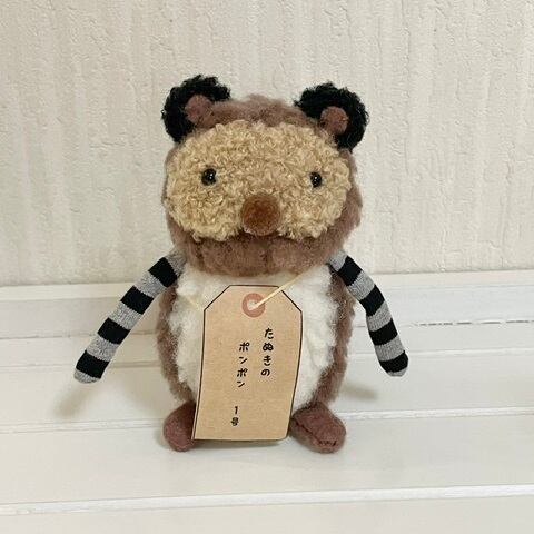 新入りのぬいぐるみ、たぬきのポンポン1号です。